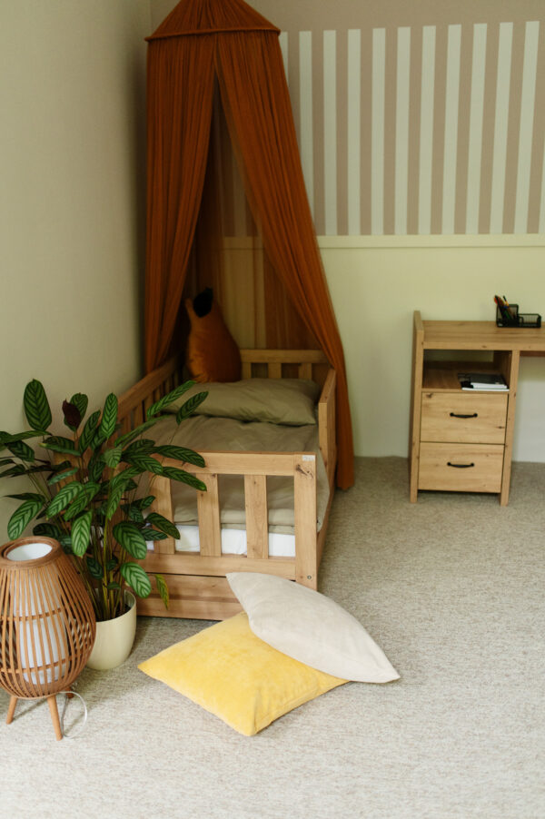 Łóżko młodzieżowe 160×80 AMELIA dąb to mebel, który idealnie wpisuje się w obecnie obowiązujące trendy. Długa barierka ochronna zabezpieczy dziecko przed wypadnięciem, a prosty styl pozwoli na szaleństwo w wyborze dodatków.