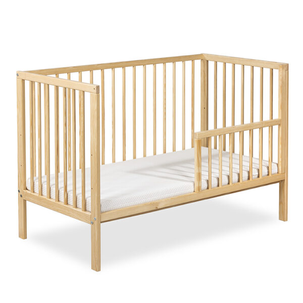Kiedy Twoje dziecko będzie chciało samodzielnie odkrywać świat i wychodzić z łóżeczka, wystarczy że zmienisz wysoki bok na niską barierkę ochronną. Dzięki temu znaczne wydłużysz możliwość użytkowania łóżeczka. Barierka jest kompatybilna z łóżeczkiem 120×60 Frania sosna.