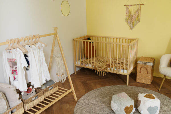 Łóżeczko Frania o wymiarach 120×60 cm zostało wykonane w całości z wysokiej jakości drewna sosnowego, które jest nie tylko trwałe i solidne, ale także naturalnie piękne. Sosna to drewno o ciepłym odcieniu, które wprowadza do pokoju dziecka przytulną i spokojną atmosferę.