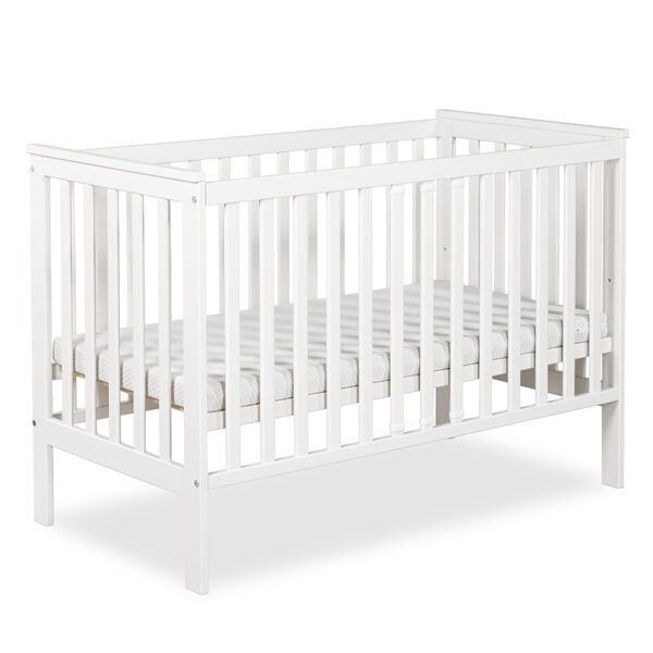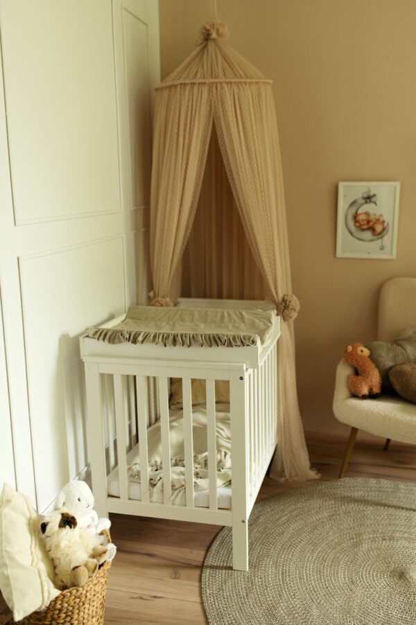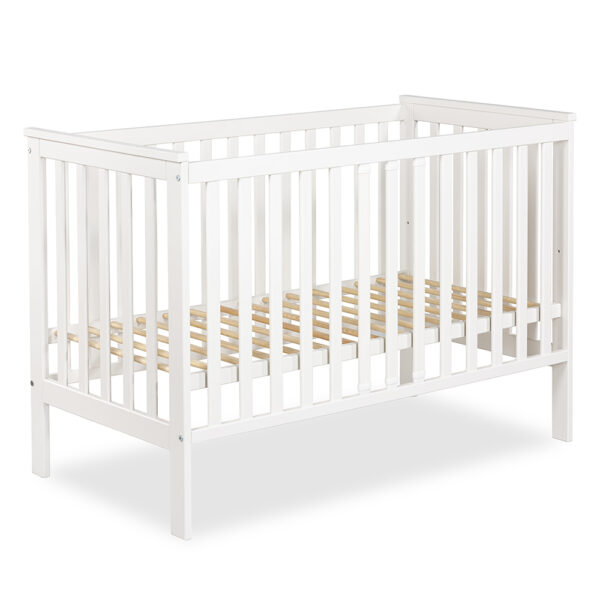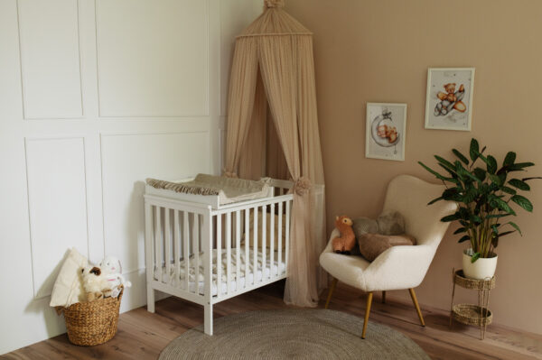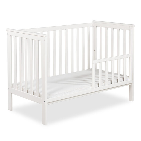 Nasze białe łóżeczko IWON o wymiarach 120×60 cm to idealne miejsce do snu i odpoczynku Twojego dziecka. Posiada płaskie szczebelki, które nadają łóżku eleganckiego wyglądu i lekkości. Mebel ten jest wykonany w 100 % drewna sosnowego i pokryty lakierami bezpiecznymi i przyjaznymi dla dzieci. Łóżko jest wykonane w taki sposób, aby zapewnić maksymalne bezpieczeństwo i komfort. W komplecie posiada gryzak, który pomaga podczas ząbkowania dziecka oraz barierkę ochronną i dzięki temu może posłużyć na lata. To łóżeczko to połączenie funkcjonalności, estetyki i troski o bezpieczeństwo Twojego dziecka.